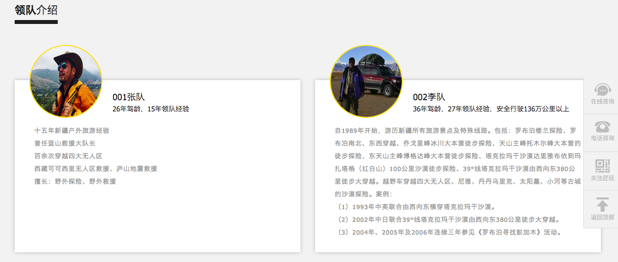 目前,平台有签约领队35人。据王桢介绍,“匠玩旅行”的签约领队各有擅长领域。其中,有人多次穿越新疆无人区,有人则精通多种少数民族语言等。