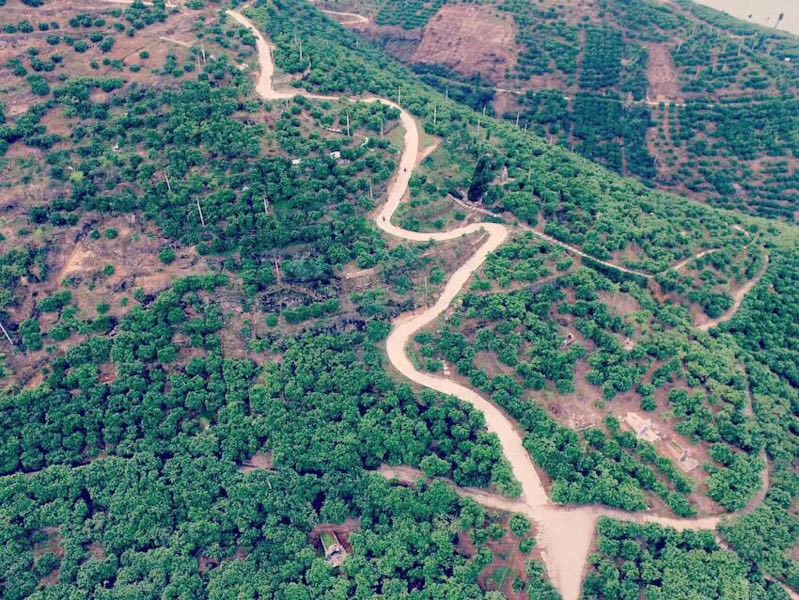 ◆ 采摘伦晚脐橙的山路崎岖陡峭。