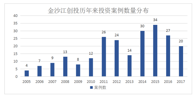 金沙江创投自2005年起共投资了208个项目,2014年和2015年投资项目数量较多,分别为30个和34个;平均每年投资项目数量约为16个。
