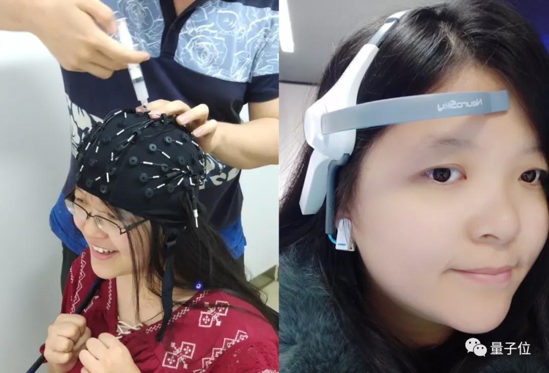 这个脑波读取设备要比量子位去清华洗头那次简单的多,只要带上一个框框,接触额头,夹住耳垂就可以了,不过功能并没有清华科研级设备那么强大。