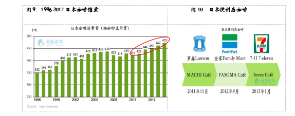 日本咖啡整体消费从1996-2017已经提升了32%,但在2011-2016年依旧能在高基数情况下实现连续五年的增长,究其原因,在于咖啡人群迭代带来了新的消费驱动力。相较于罐装咖啡,年轻人更偏爱新鲜咖啡,由于大多一人在家,家庭自制咖啡的需求不如60及70后,但罐装咖啡的口味又无法满足他们,于是精品咖啡和便利店咖啡占据了年轻消费人群的一左一右。对于咖啡个性化口感有更高追求的年轻人选择精品咖啡,一些成功的精品咖啡在出售咖啡的时候也在兜售品牌和文化;而便利店咖啡在“新鲜“、”平价“、”便利“上击中了剩下那些对个性化咖啡口感没有要求的场景。