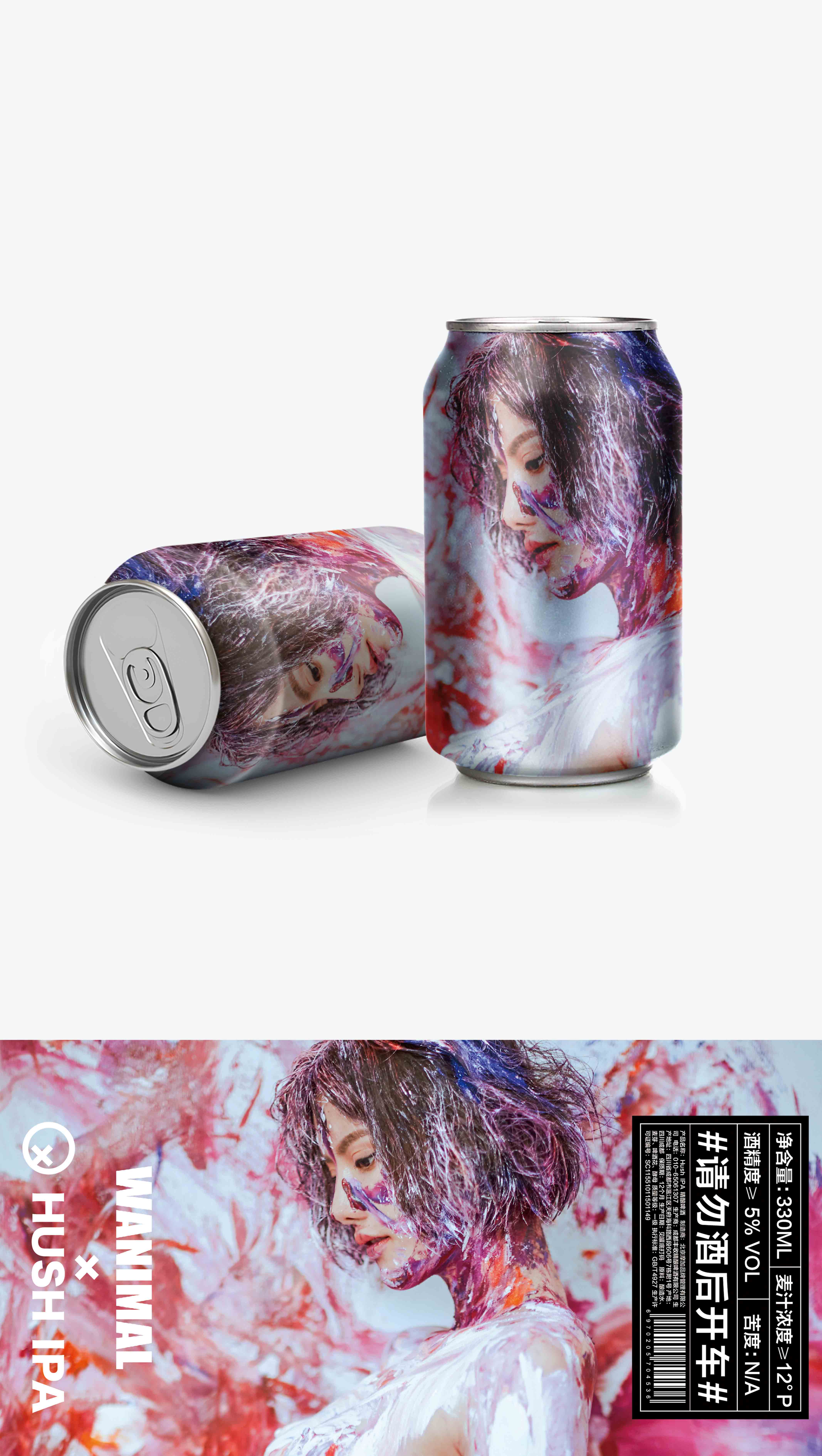 凭借过往的经历和资源,他通过 “刷脸” 找来一系列亚文化IP合作,试图通过与各大KOL联手,占领流量优势,塑造品牌形象。HUSH IPA的第一个产品便是与WANIMAL王动合作。WANIMAL是中国目前极具话题性的人体摄影艺术家,出爷希望通过与亚文化符号的联名合作来打造品牌,同时文化IP借助自身的影响力与流量,可以为HUSH IPA带货,达到双赢的目的。