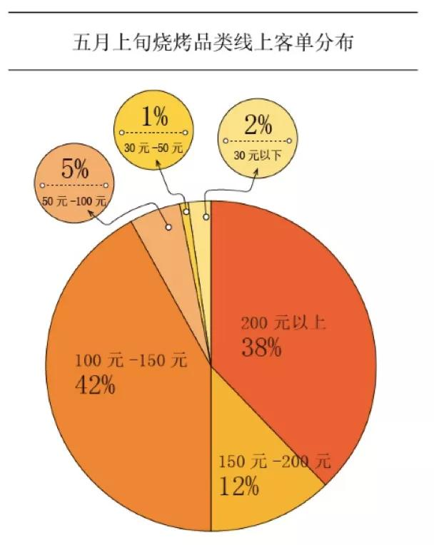 值得注意的是,在2019上半年,NCBD数据显示客单价在30~60元之间的烧烤才是大头,占比68.2% 。