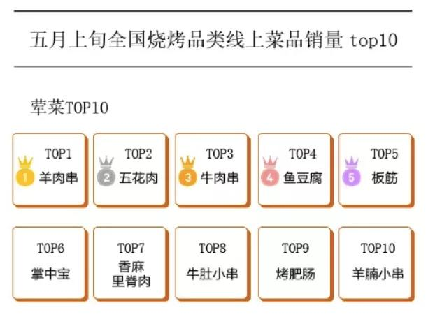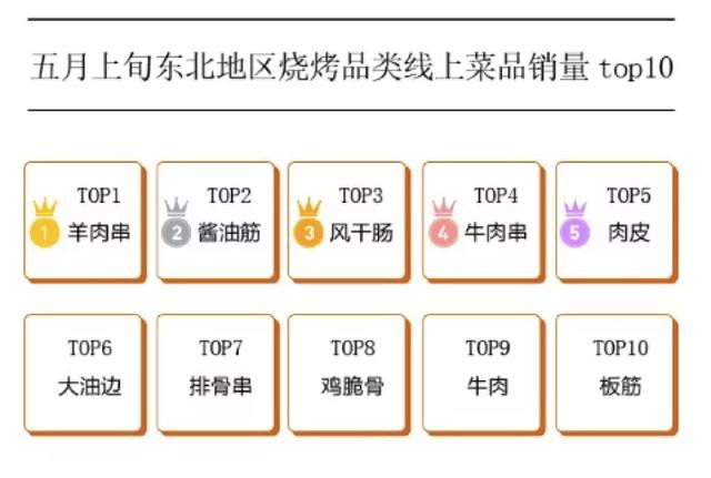 而西南地区是最独特的存在,羊肉串突然遇冷,只排到第十,五花肉、糯鸡皮和经典培根是他们的最爱。