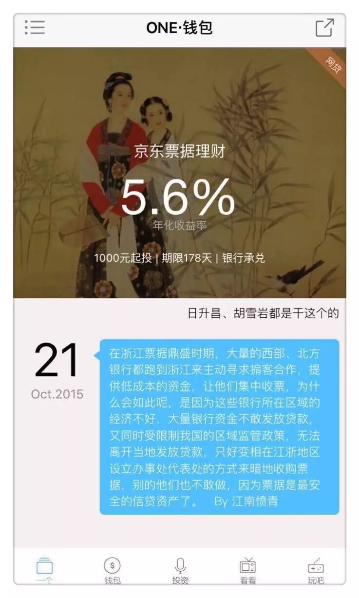 10月10日,“一个钱包”基本成型,主要服务成熟的投资者和小白用户。